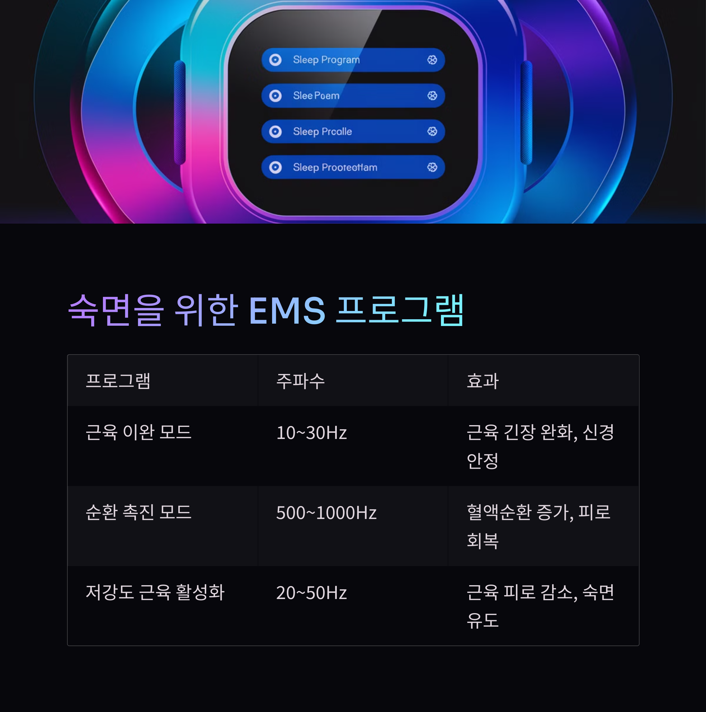 | 저강도 근육 활성화 | 20~50Hz | 근육 피로 감소, 숙면 유도 |