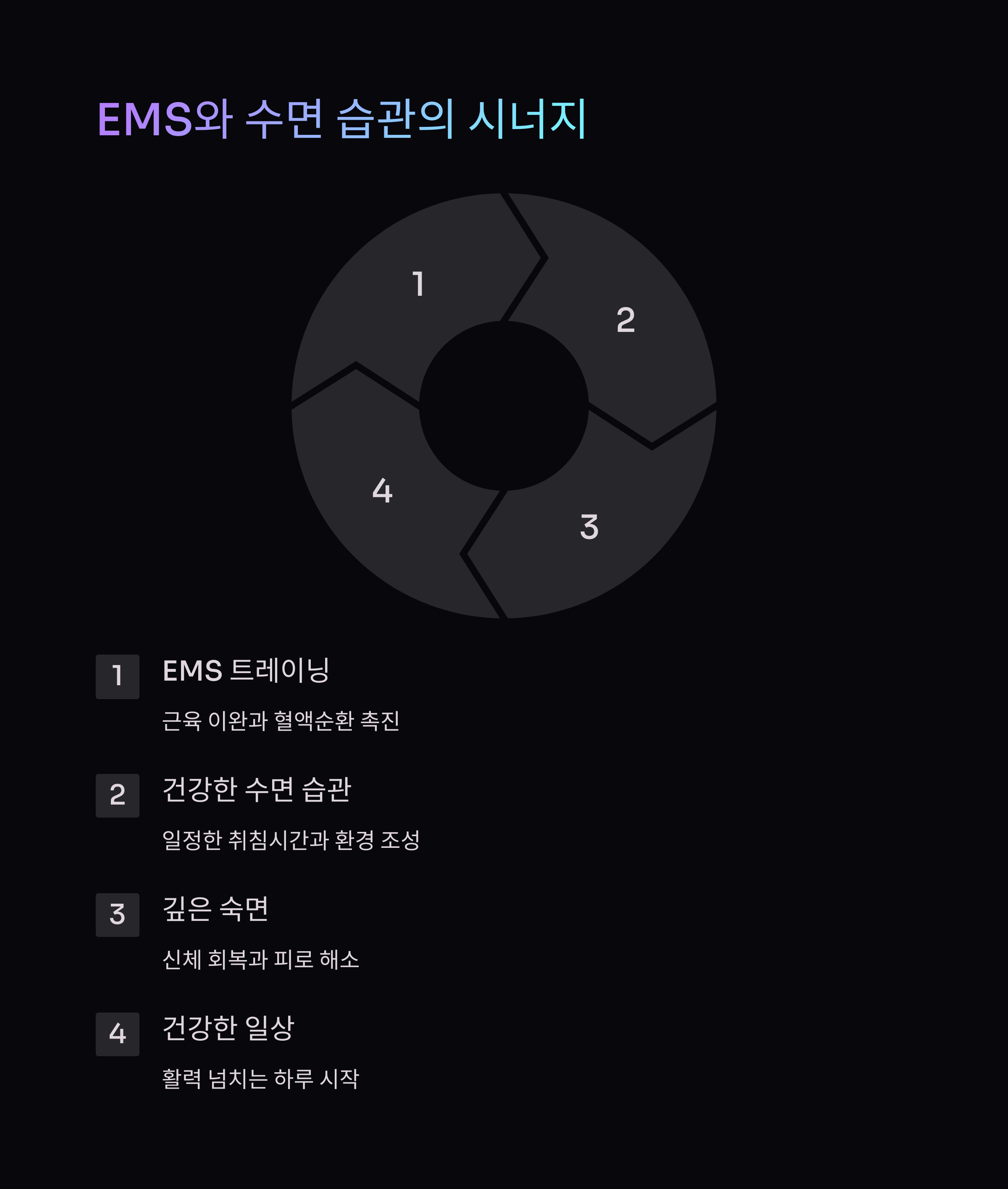 오늘은 건강한 수면 습관을 형성하는 방법과 EMS가 어떻게 이를 돕는지 알아보겠습니다.