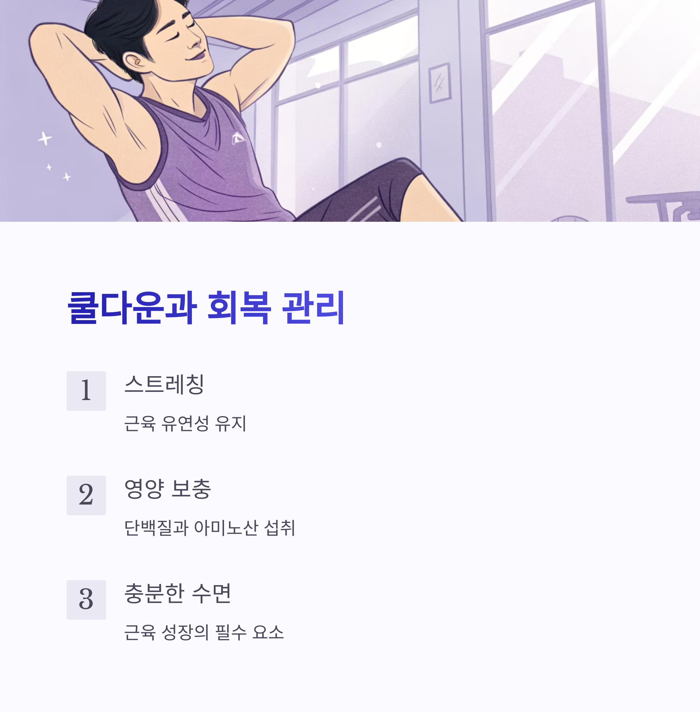 - 충분한 수면 – 근육 성장과 회복을 위한 필수 요소